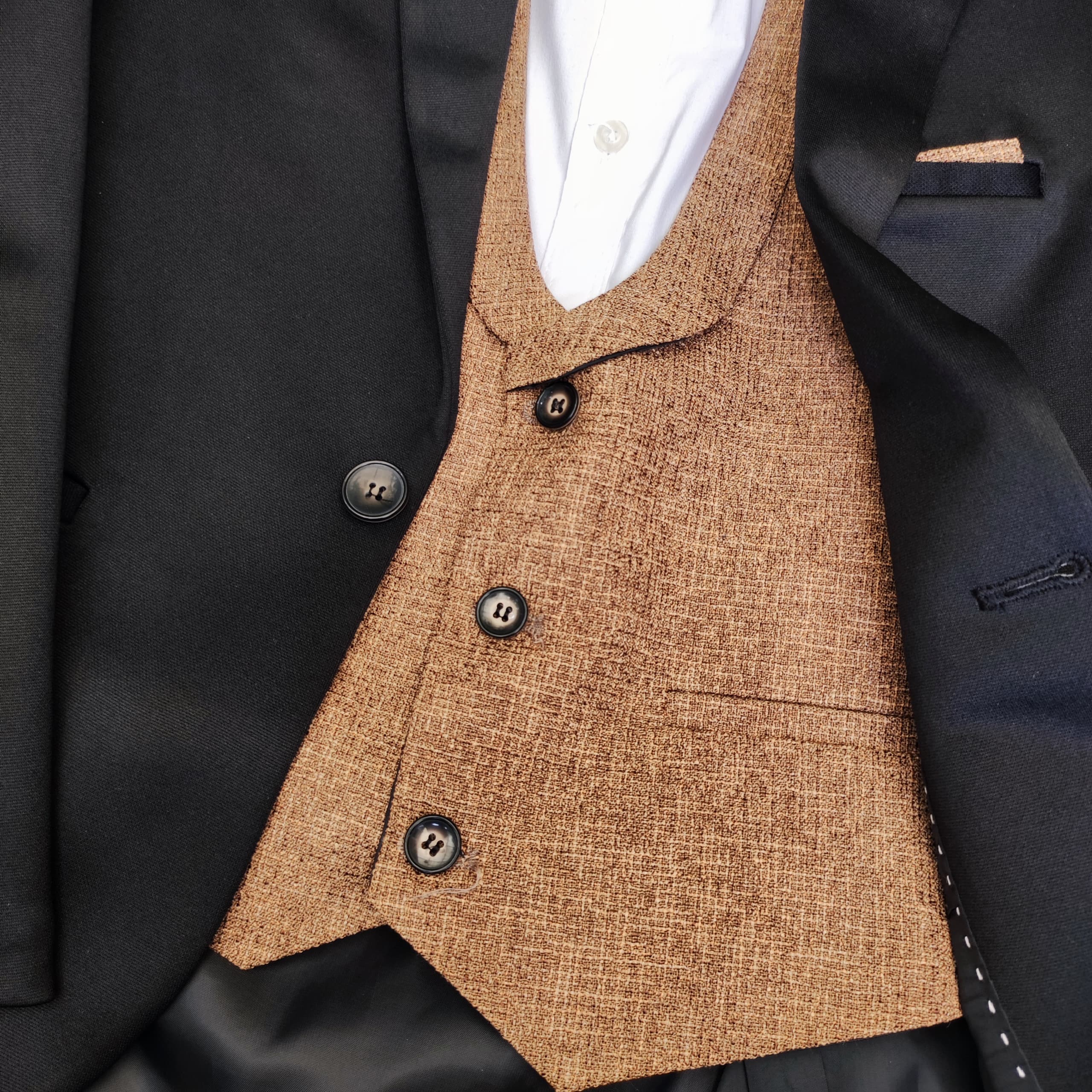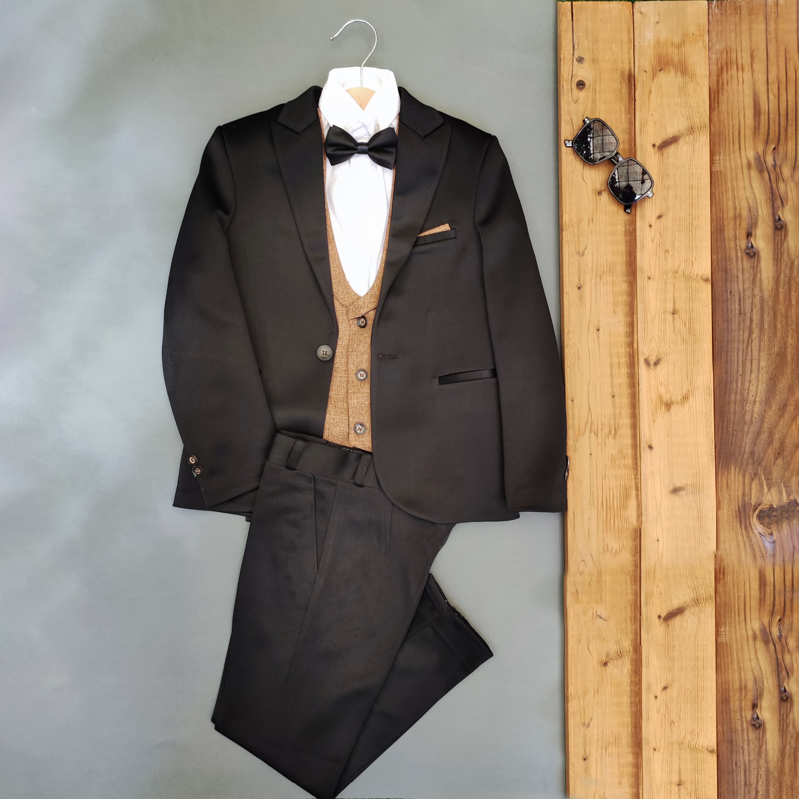 کت شلوار مشکی پسرانه طرح ژیله شانتون قهوه ای